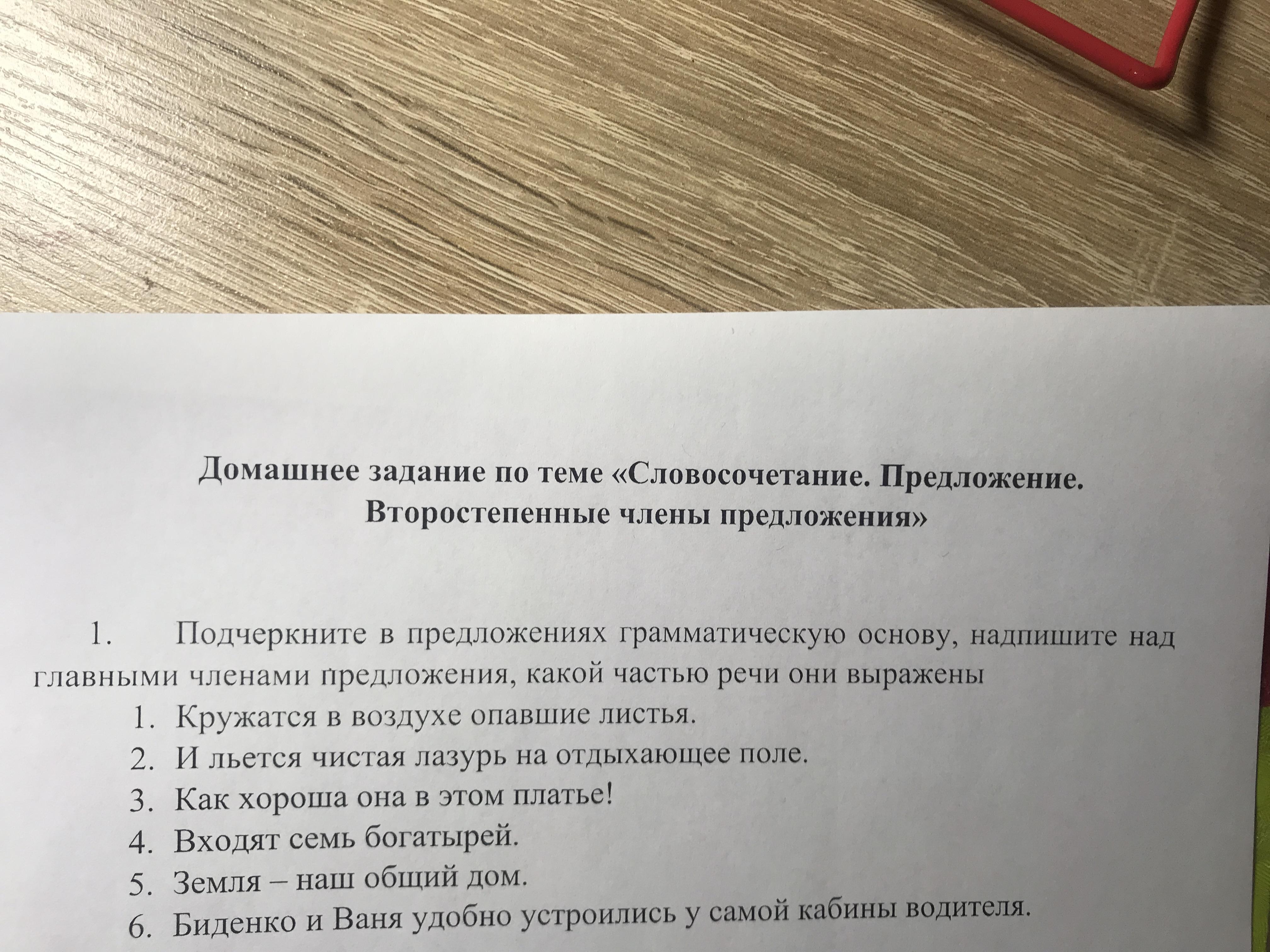 6 Сказуемое – устроились – гл. Подлежащее – Биденко и Ваня - сущ