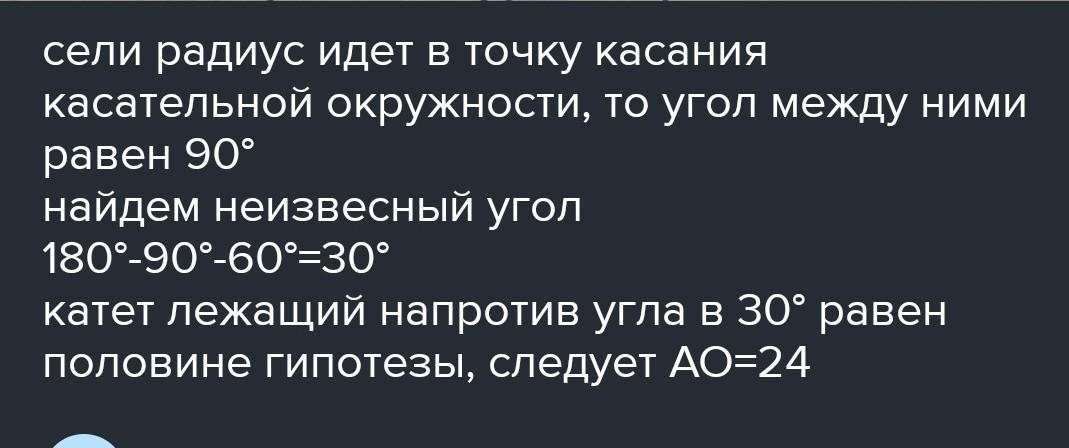 190° -90-60= 30° следовательно это половина, 7×2= 14 Ответ: АО=14