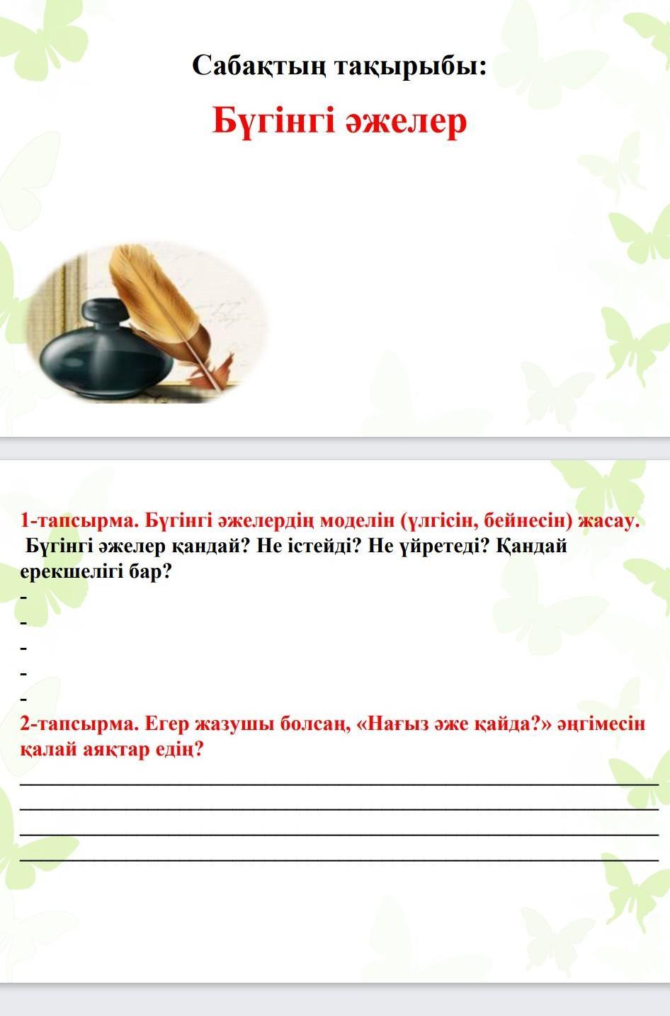 ( 2-тапсырманы орындай алмадым, әңгімені ұмытып қалдым)