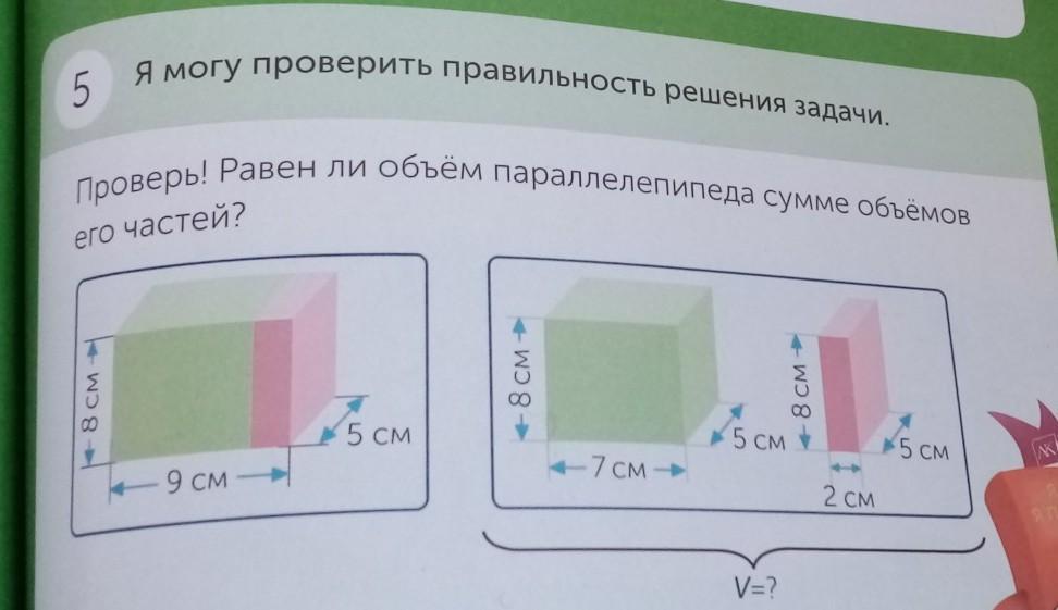 Проверь! Равен ли объём параллелепипеда сумме объёмов
