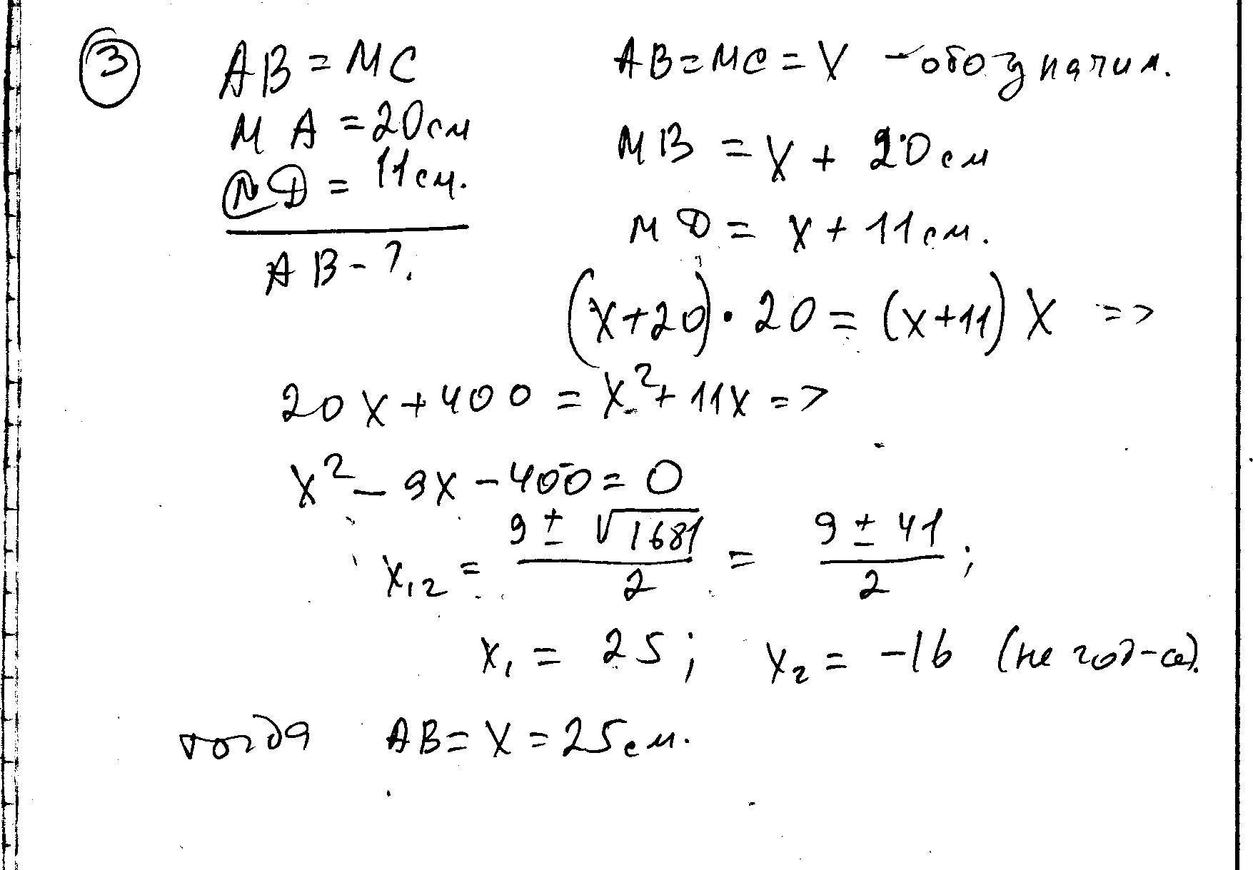 в)АВ,если АВ=МС,МА=20 см,CD=11см