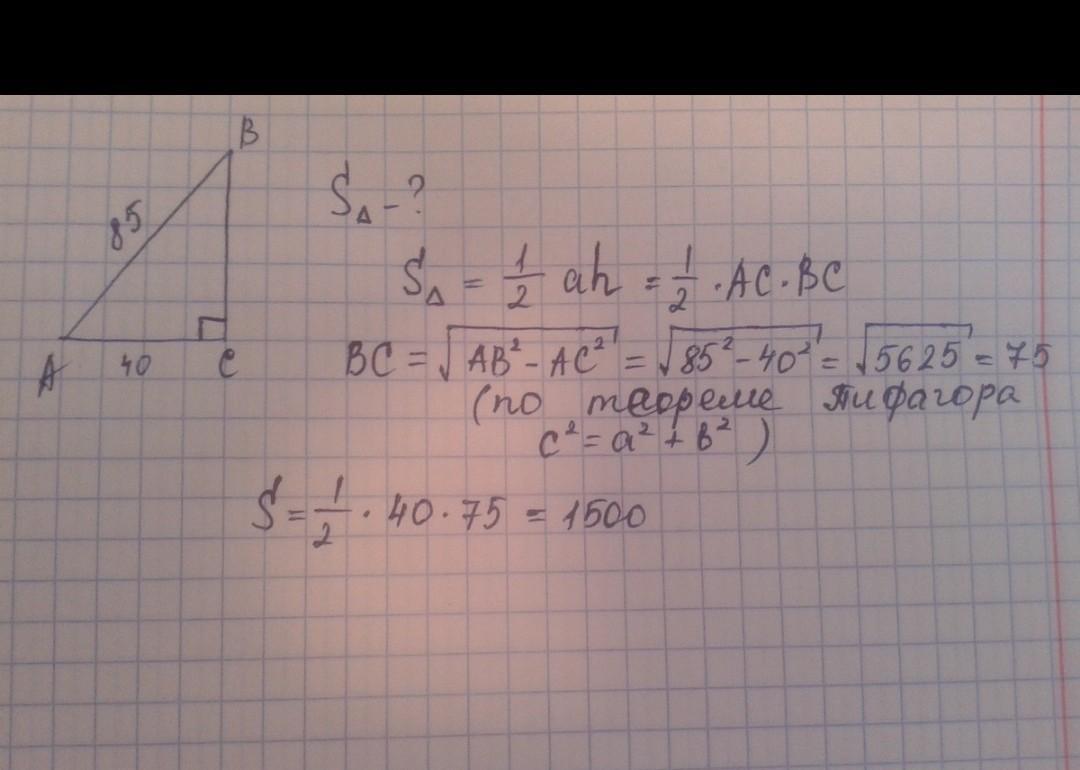 Найти площадь прямоугольного треугольника если его катет и гипотенуза равны соответственно 7 и √ 85