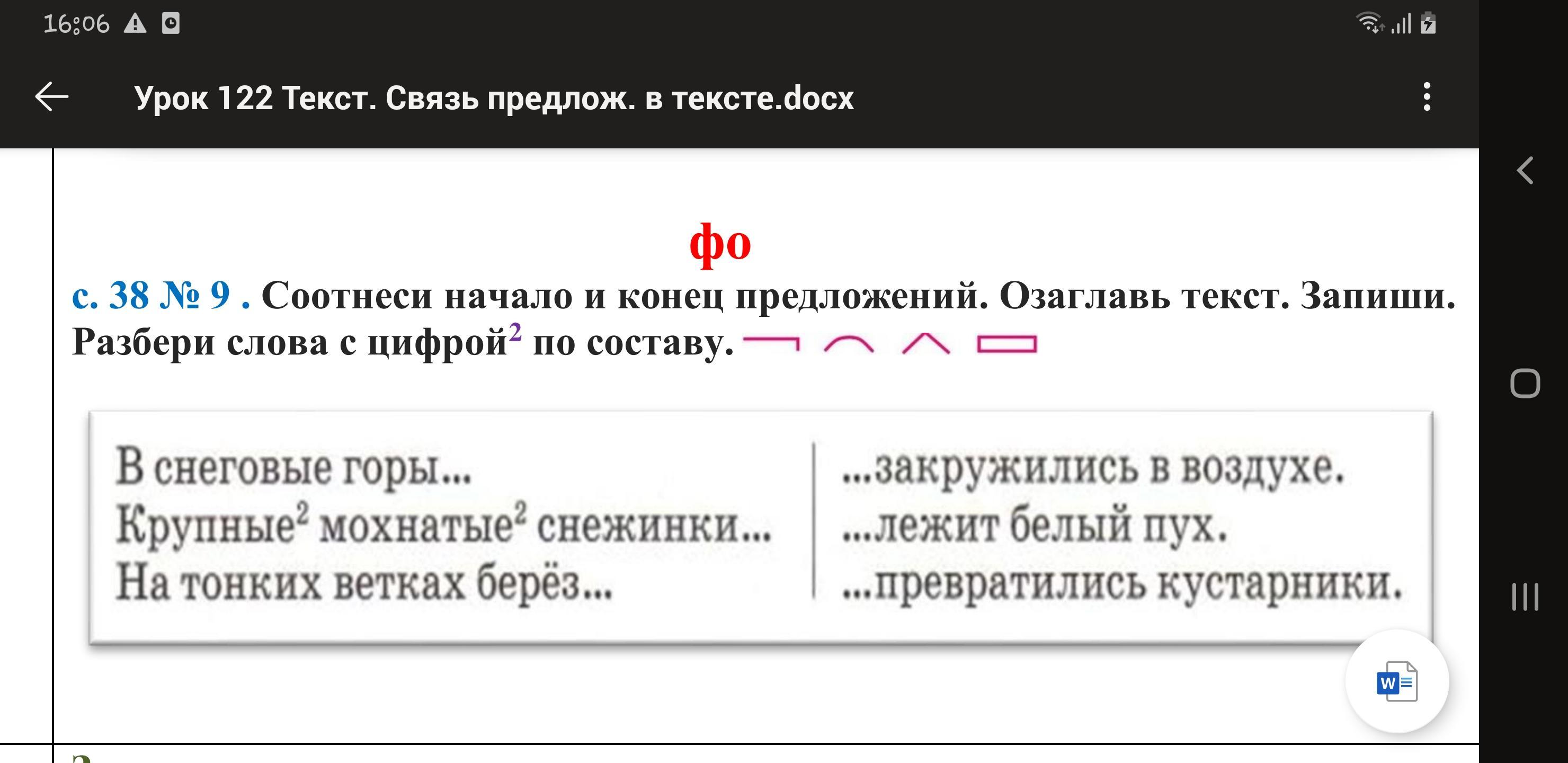 Соотнеси начало и конец предложений. Озаглавь текст. Запиши.