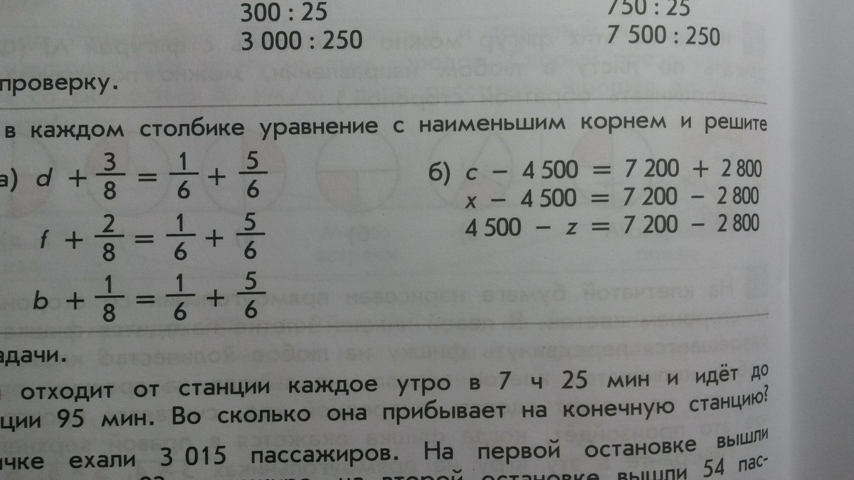 Выберите в каждом столбике уравнение с наименьшим корнем и решите его