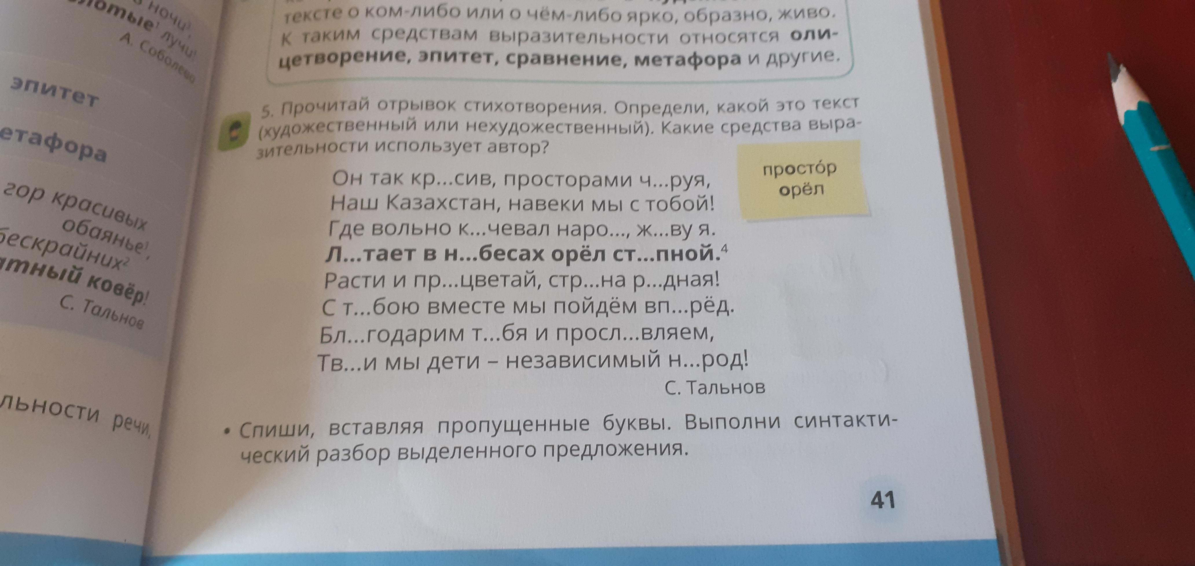 Прочитай отрывок стихотворения Определи Какой это текст (художественный или нехудожественный)Какие средства выразительности использует автор?