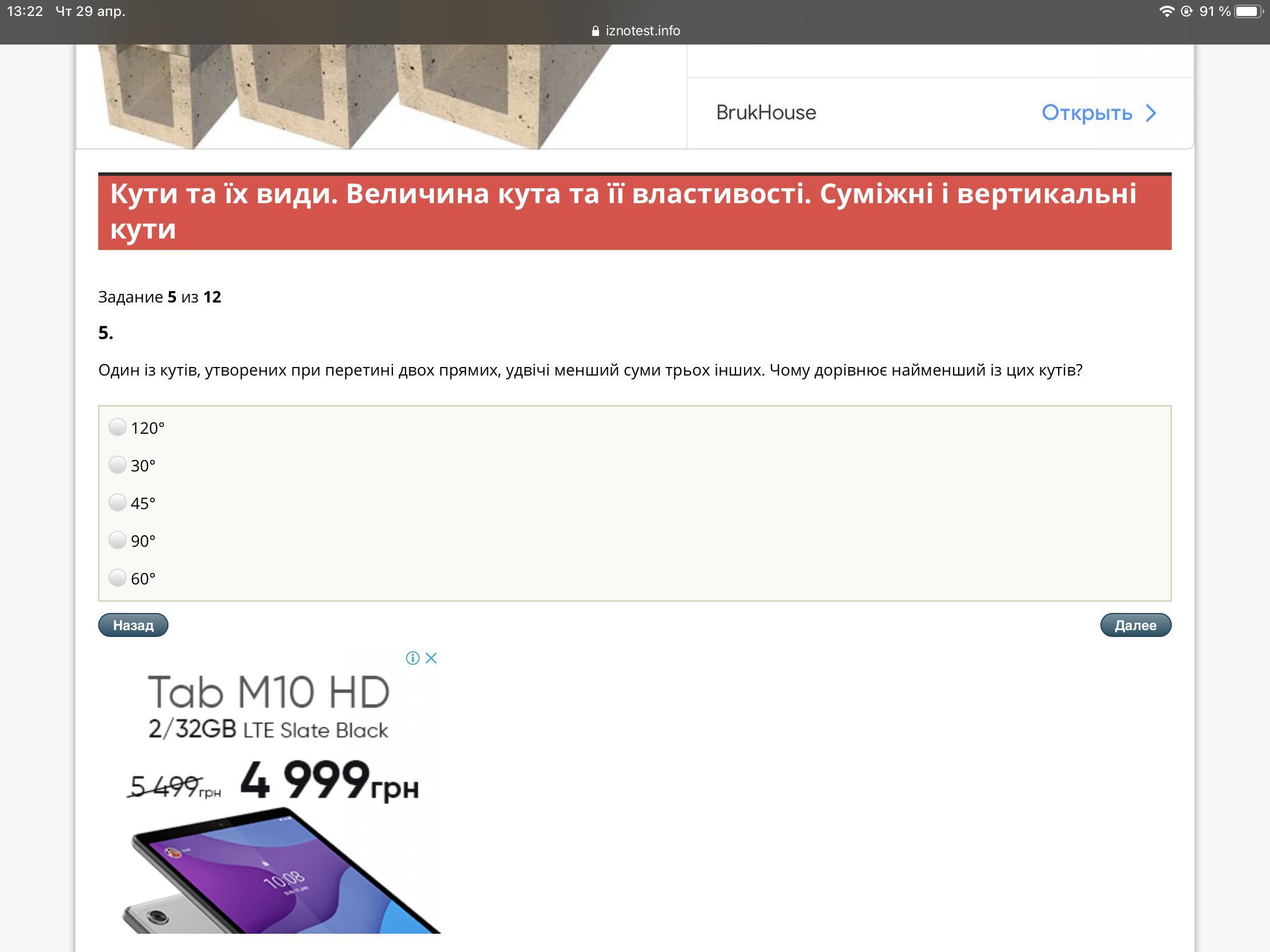 Який кут утворюють стрілки годинника, коли показують 3 год? + там ещё задания