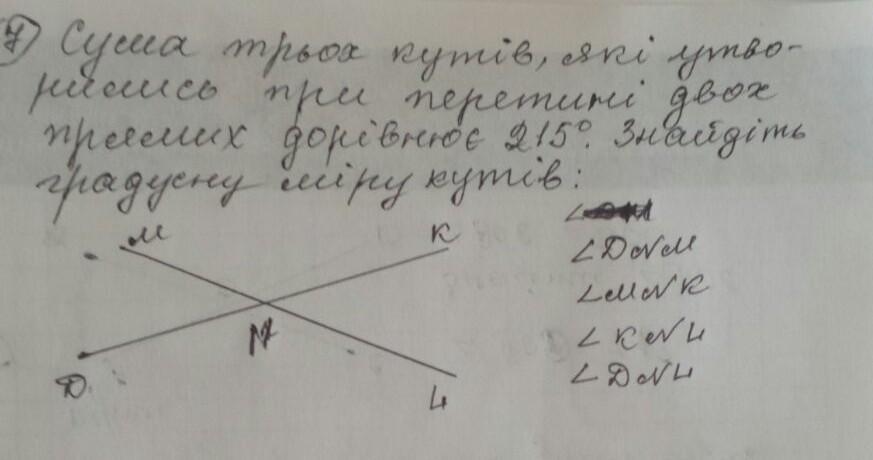 Ответ:Т.к сумма трёх углов равна 215(∠MND+∠MNK+∠KNL), найдём ∠DNL:360°-215°=145°