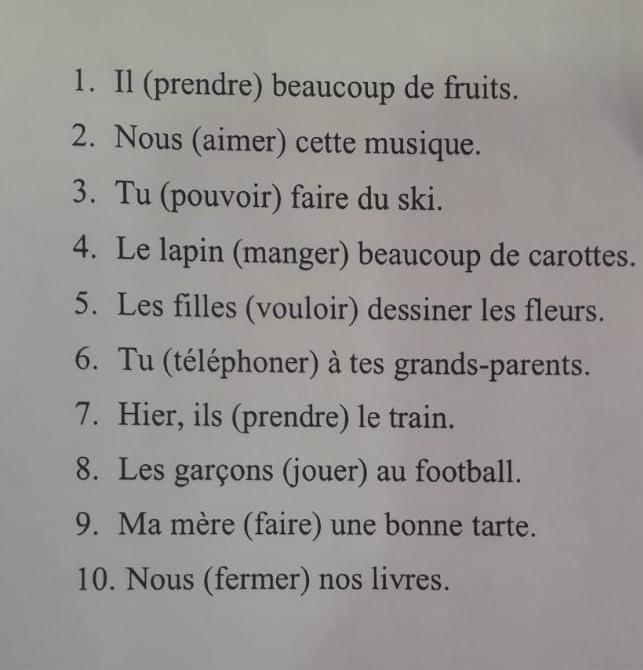 1. Il (prendre) beaucoup de fruits.