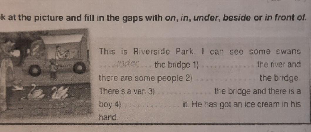 9 Look at the picture and fill in the gaps with on, in, under, beside or in front of.