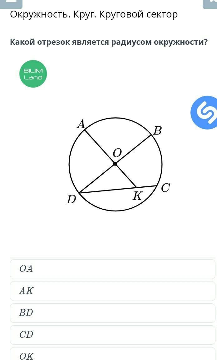 Радиус — это отрезок, который соединяет центр окружности и любую точку на ней.