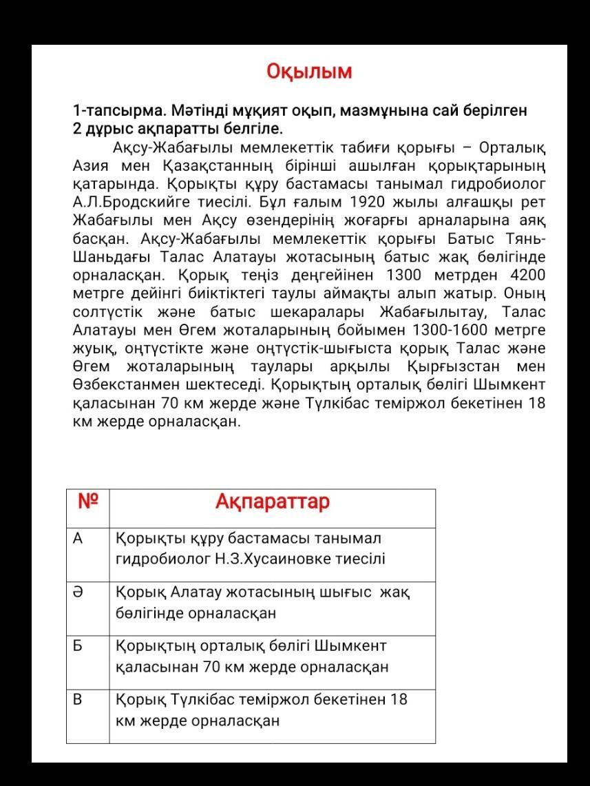 1-тапсырма. Мәтінді мұқият оқып, мазмұнына сай берілген