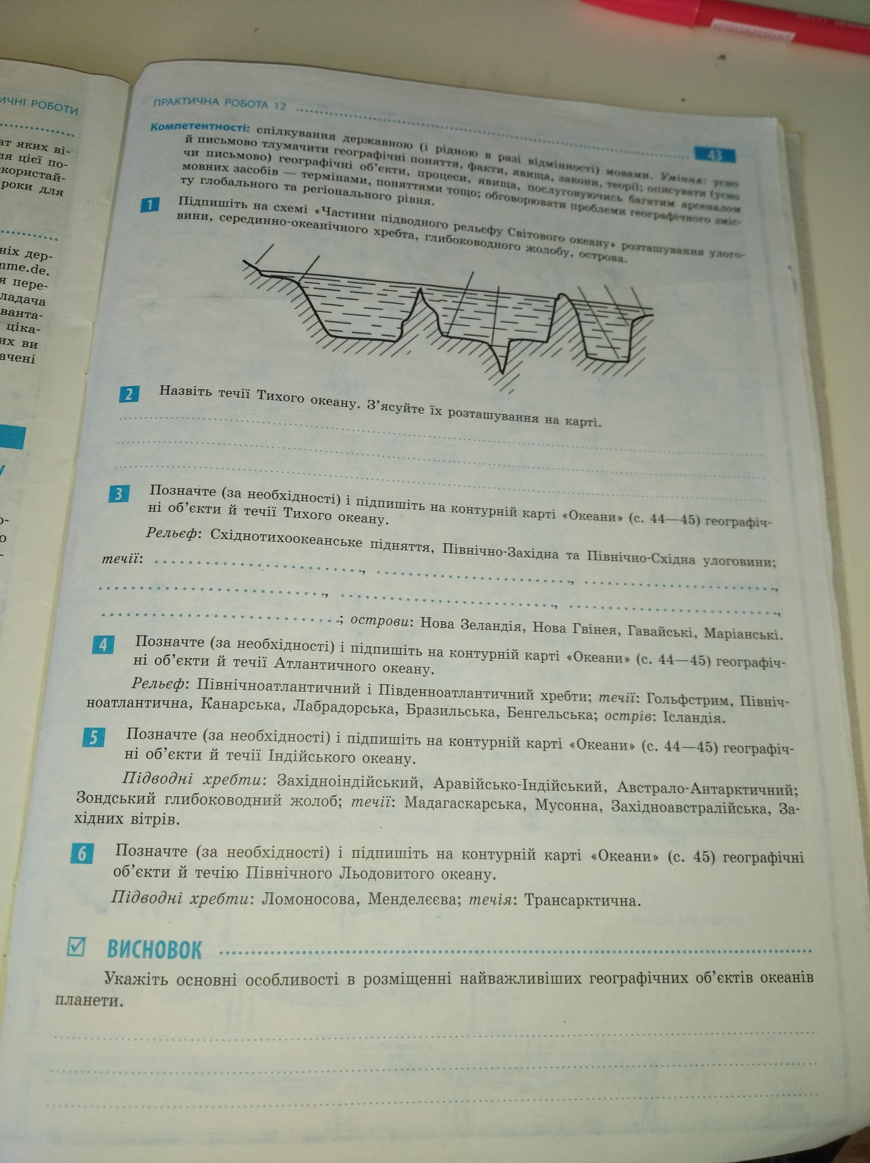 Течії у тихому океані:Північна і Південна пасатні, Куросіо, Східно-Австралійська (теплі), Західних Вітрів, Перуанська, Каліфорнійська (холодні)