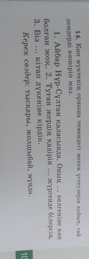 14. Көп нүктенің орнына төмендегі мекен үстеулерін қойып, сөй-