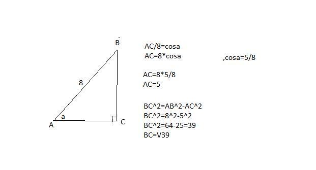 Знайти невідомі сторони прямокутного трикутника ABC (Кут С=90°),якщо AB=8 см; cos A 5/8. Очень срочнооо