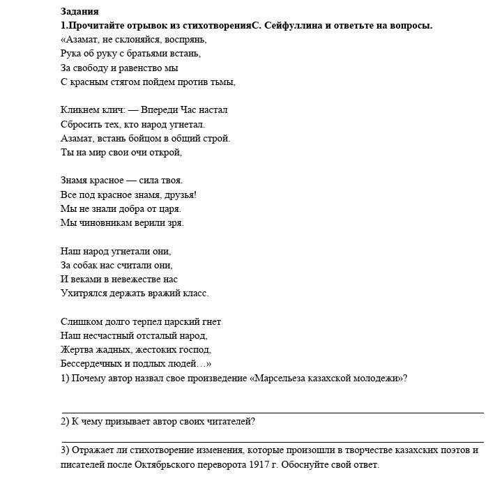 1.Прочитайте отрывок из стихотворенияС. Сейфуллина и ответьте на вопросы....