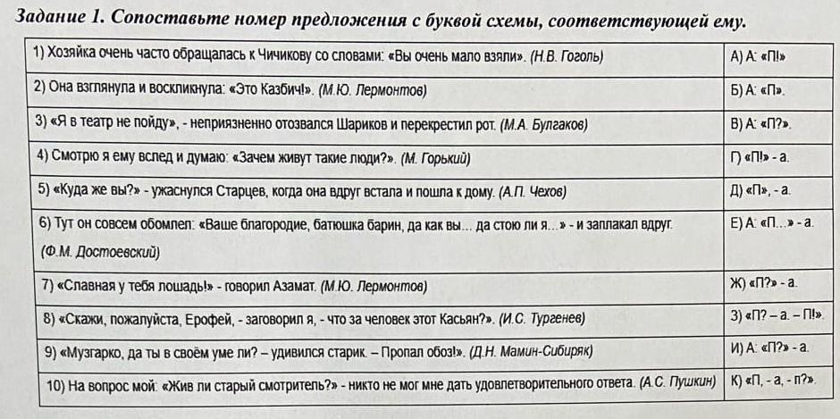 1Б, 2А, 3Д, 4В, 5Ж, 6Е, Г, 8К, 9З, 10И