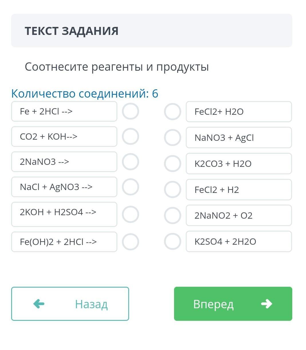 Соотнесите реагенты и продукты
