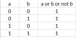 в)a or b or not b