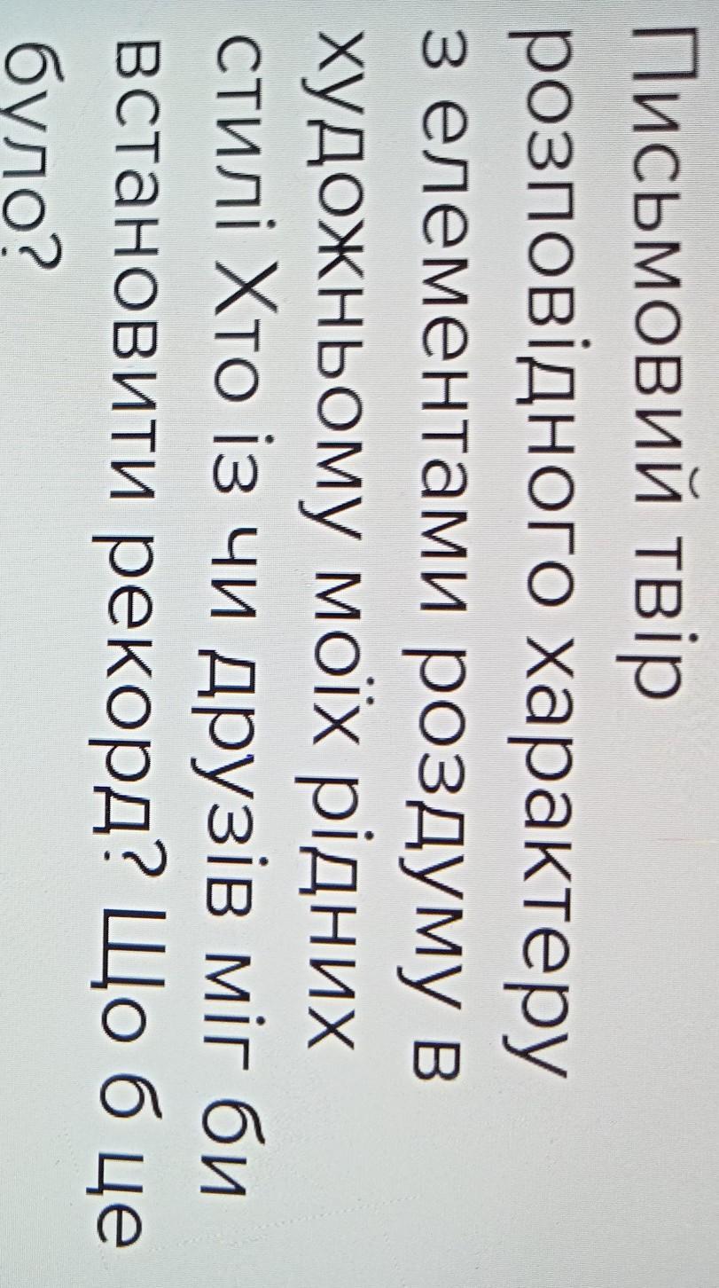 ЗАКРЫТЬ Письмовий твiр розповідного характеру з елементами роздуму в художньому моїх рідних стилі Хто із чи друзів міг би встановити рекорд? Щоб це було???