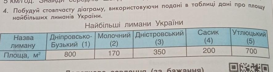 4. Побудуй стовпчасту діаграму, використовуючи подані в таблиці дані про площу