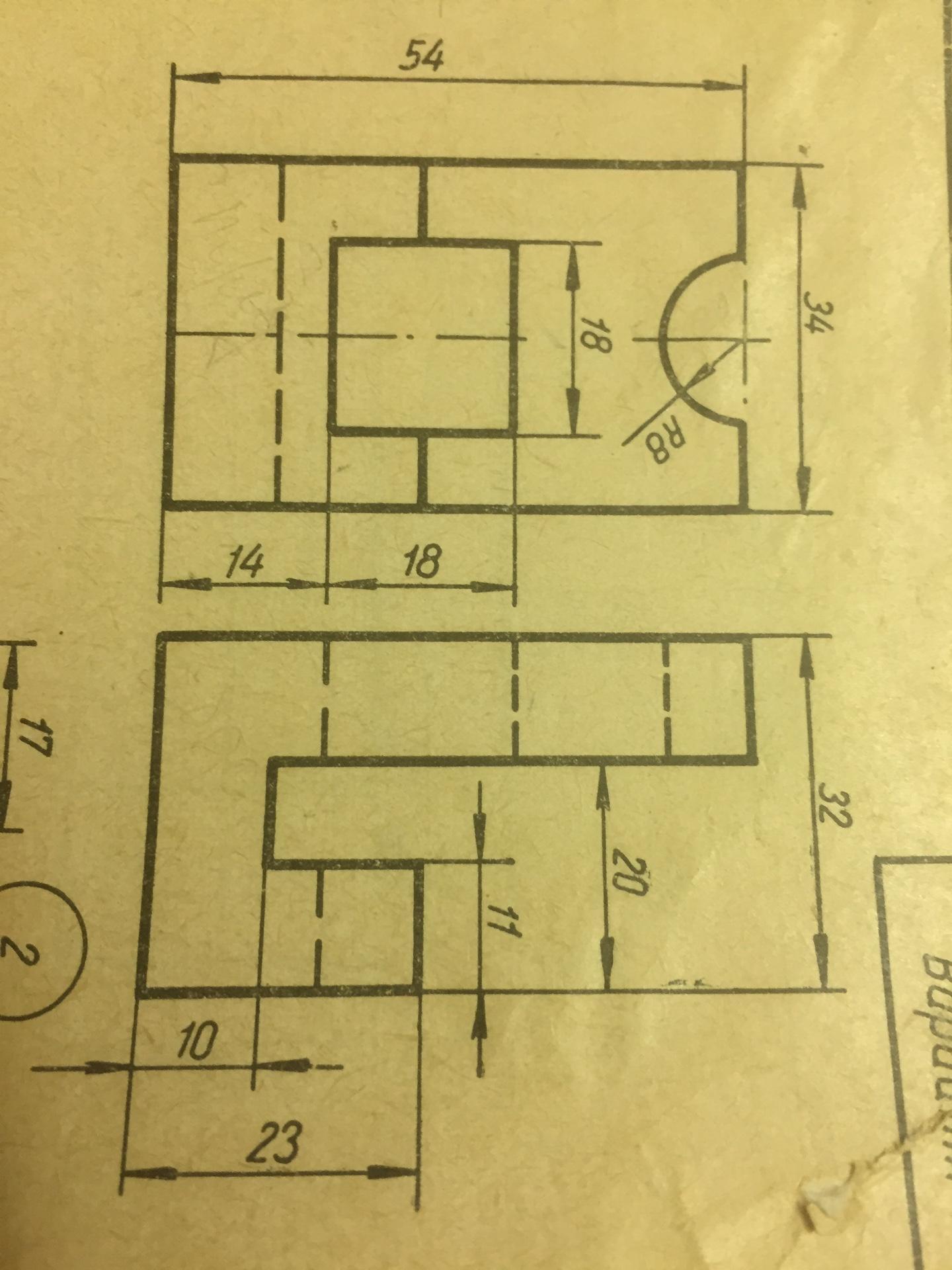 Чертёж детали из трёх видов , выполненный от руки с сохранением пропорций на глаз, см.на фото.