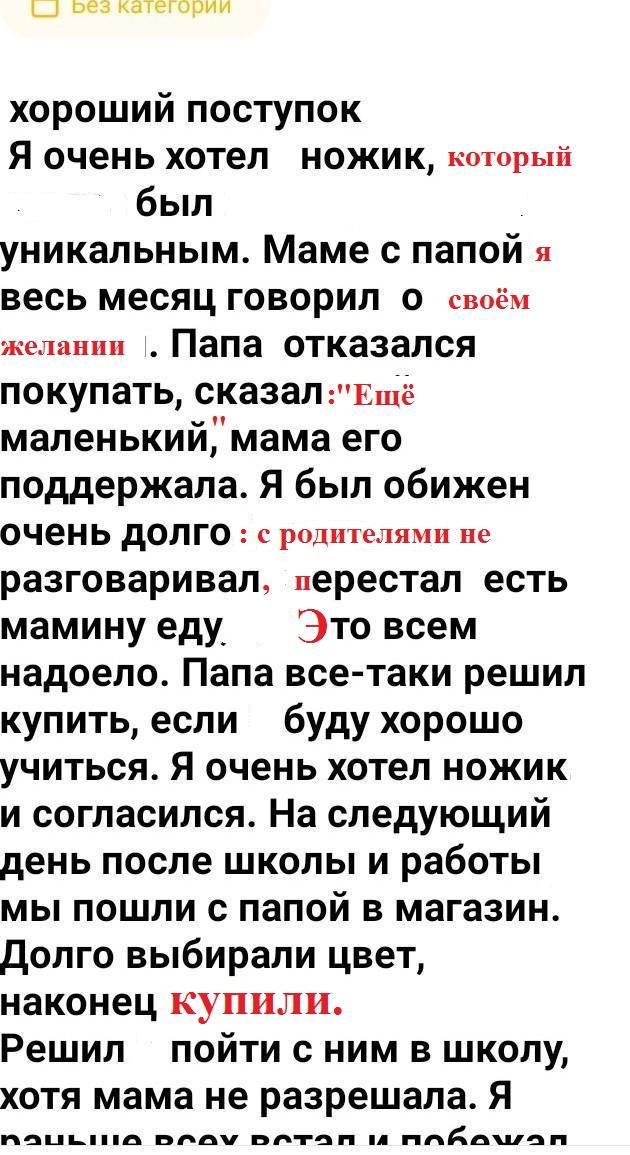 Ответ:2 предложение я не с большой буквы, и не ножики а о ножике, потом предложение папа все таки решил купить, если ("не с большой буквы я")
