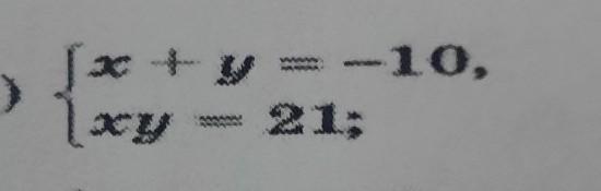 Теорема Виета гласит, что -b=x1+x2, c=x1*x2. Т.е. в задании нам уже даны коэффициент c и - коэффициент b. Единтственно тут написано не х1, х2, а х и у. Стандартное квадратное уравнение выглядит как ax^2+bx+c=0. В него мы подставляем данные нам коэффициенты b и с, не забывая о том, что по Виету мы получаем -b, а не само b. Ну, а поскольку это Виет, то коэффициент а=1. После подстановки решаем как обычное квадратное уравнения, получая иксы.