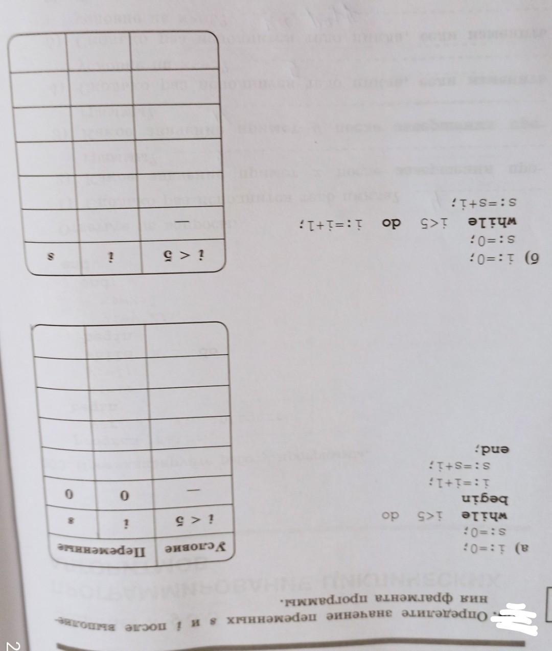 В варианте б опять же цикл while. Пока условие i меньше 5 не выполниться, к переменной i будет прибавляться единичка, а к переменной s будет прибавляться значение i.
