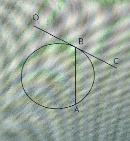Прямая ОС касается окружности в точке В. Найди величину острого угла