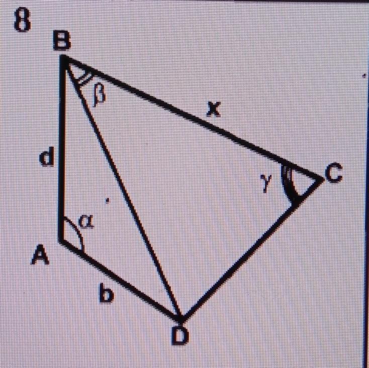 х=√(d^2+b^2-2db cos a ) ×sin(q+v) /sin q