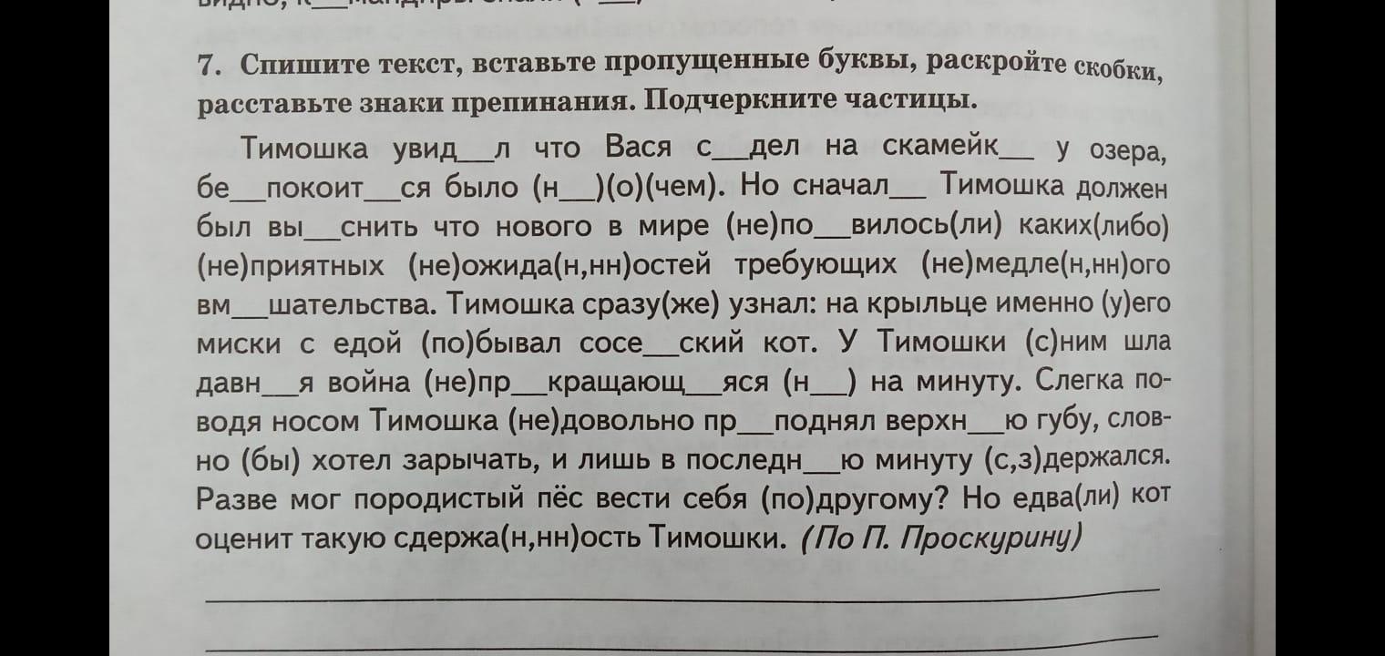 Тимошка увидел,что Вася сидел на скамейке у озера, беспокоиться было не о чем. Но сначала, Тимошка должен был выяснить, что нового в мире, не появилось ли каких-либо неприятных неожиданностей,требующих немедленного вмешательства. Тимошка сразу же узнал: на крыльце, именно у его миски с едой, побывал соседский кот. У Тимошки с ним шла давняя война,непрекращающияся ни на минуту. Слегка поводя носом,Тимошка недовольно приподнял верхнюю губу,словно бы хотел зарычать, и лишь в последнюю минуту сдержался. Разве мог породистый пёс вести себя по другому? Но едва ли кот,оценит такую сдержанность Тимошки.