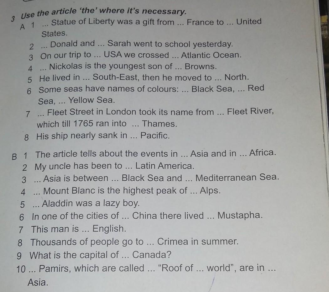 10) (Пропуск) , the, the, (пропуск)