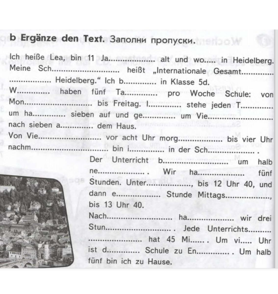 Jahre, wohne, schule, Gesamtschule, bin, Wir, Tage, Montag, Ich, Tag, halb, gehe, Viertel, aus, Viertel, morgens, nachmittags, ich, beginntt, neun, haben, Unterricht, eine, Mittagspause, Nachmittags, haben, Stunden, Unterrichtstunde, Minuten, vier, die, Ende