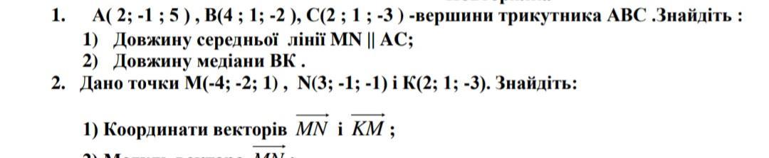 Точка К имеет кооодинаты ((2+2)/2,(-1+1)/2,(5-3)/2)
