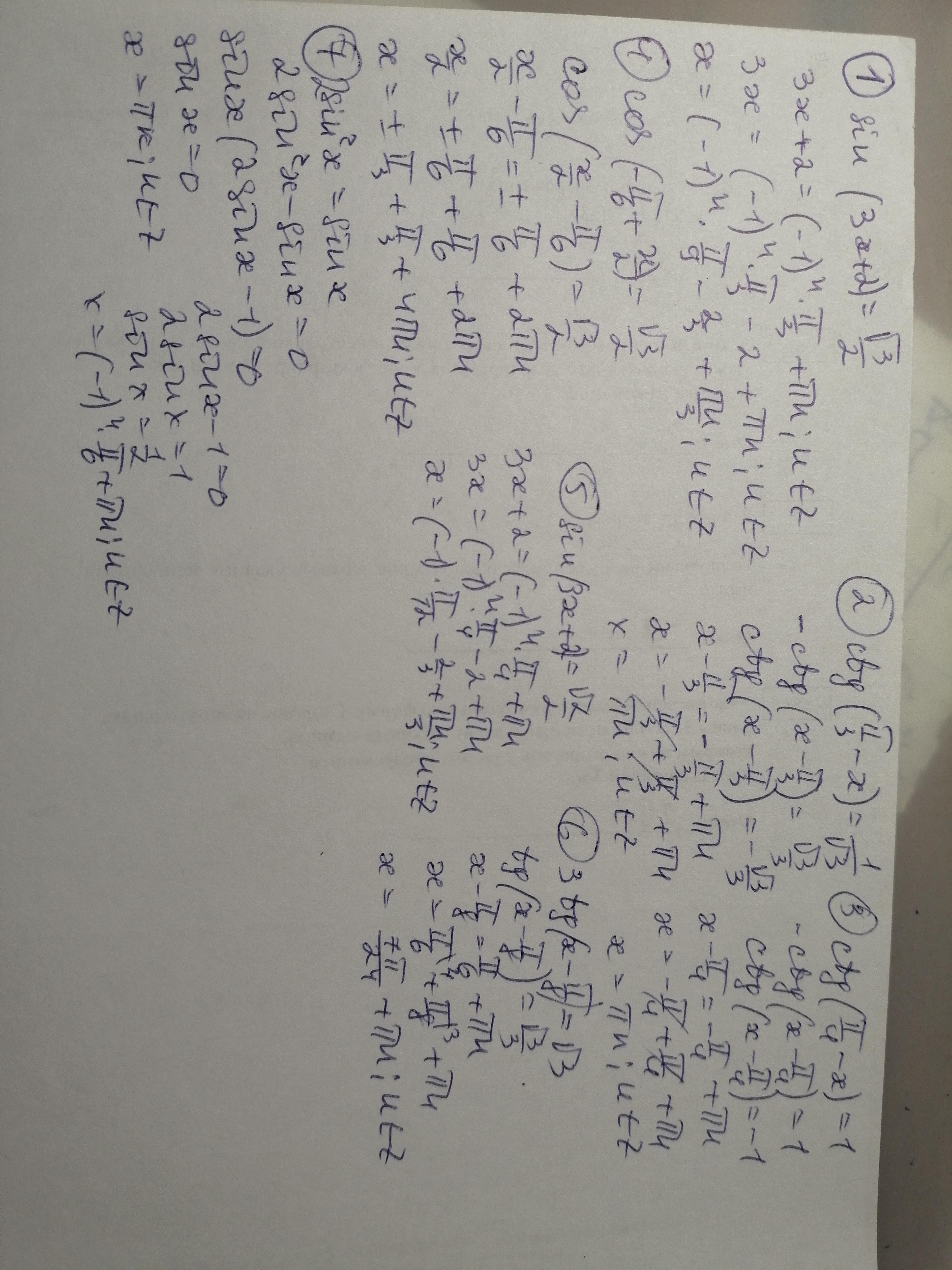 Решите простейшие тригонометрических уравнения: