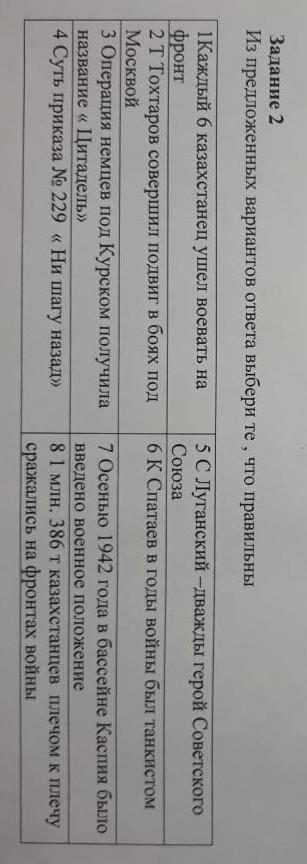 Некоторые вопросы достаточно странные, в том плане, что, например, по пункту № 1 (каждый 6-й казахстанец ушёл на войну) - по идее на войну ушёл каждый 5-й казахстанец. Поэтому непонятно, как оценивать это утверждение - скорее всего, оно - неверное.