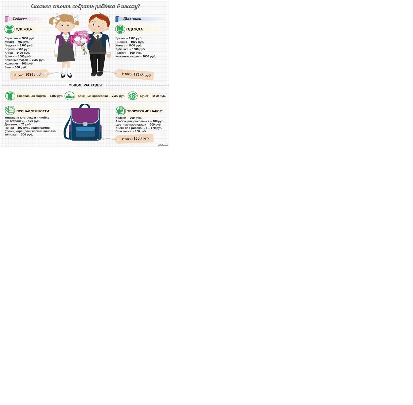 А) Рассчитайте, какой процент от семейного дохода нужно потратить на первоклассника в семье, если ее суммарный доход 52000 руб.?