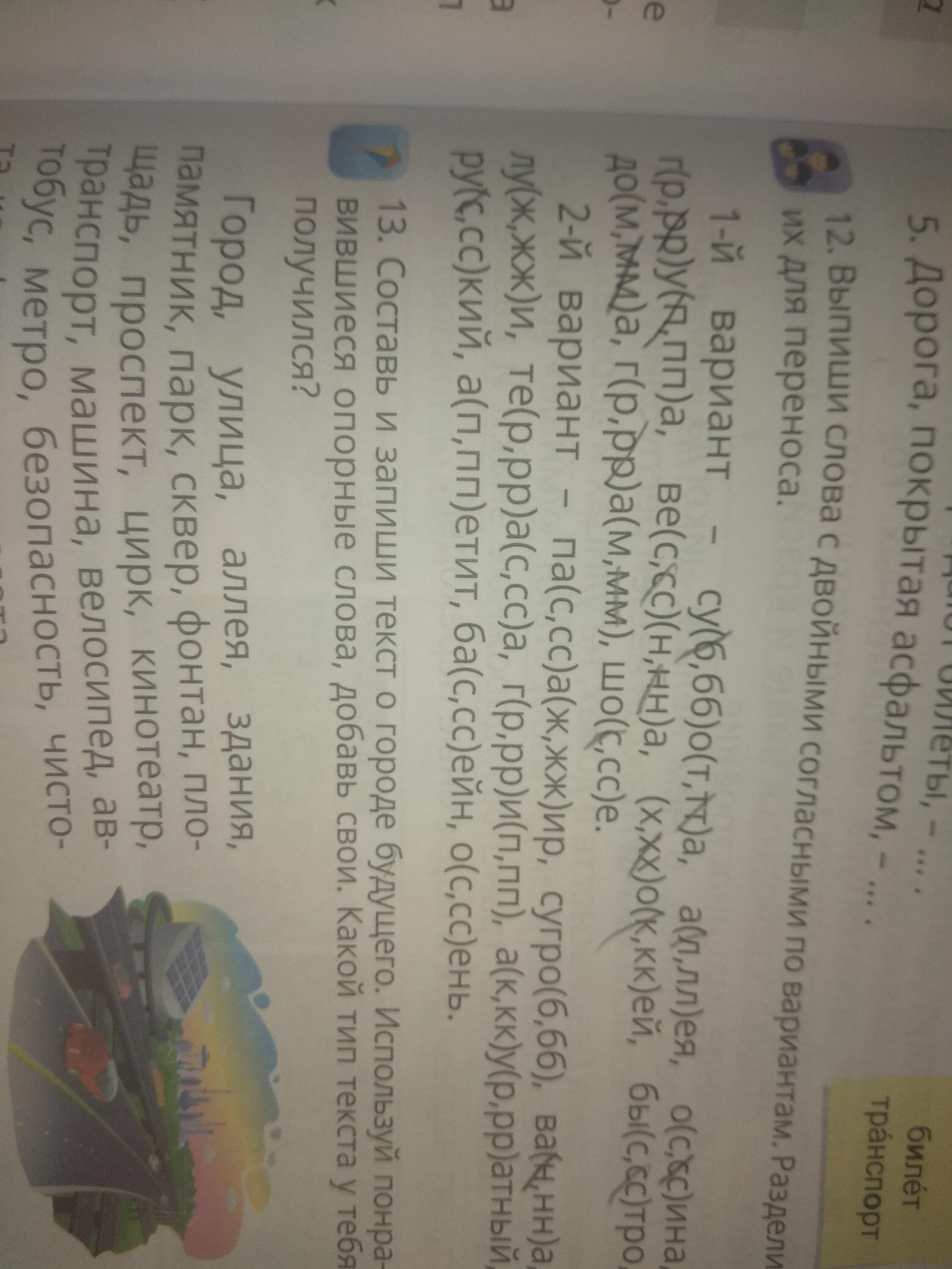 Помоги пожалуйста.12.Выпиши слова с двойными согласными по вариантам.Раздели их для переноса . 2й вариант