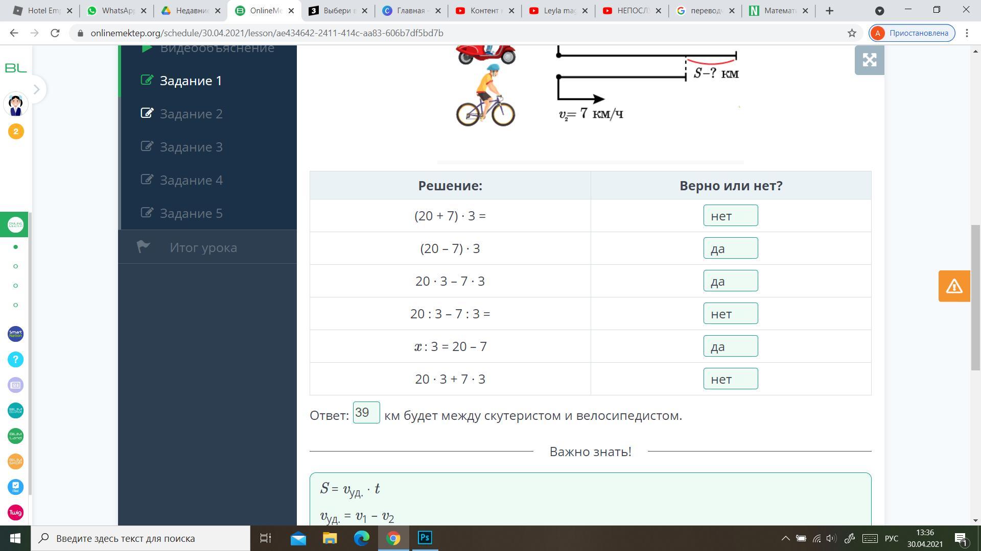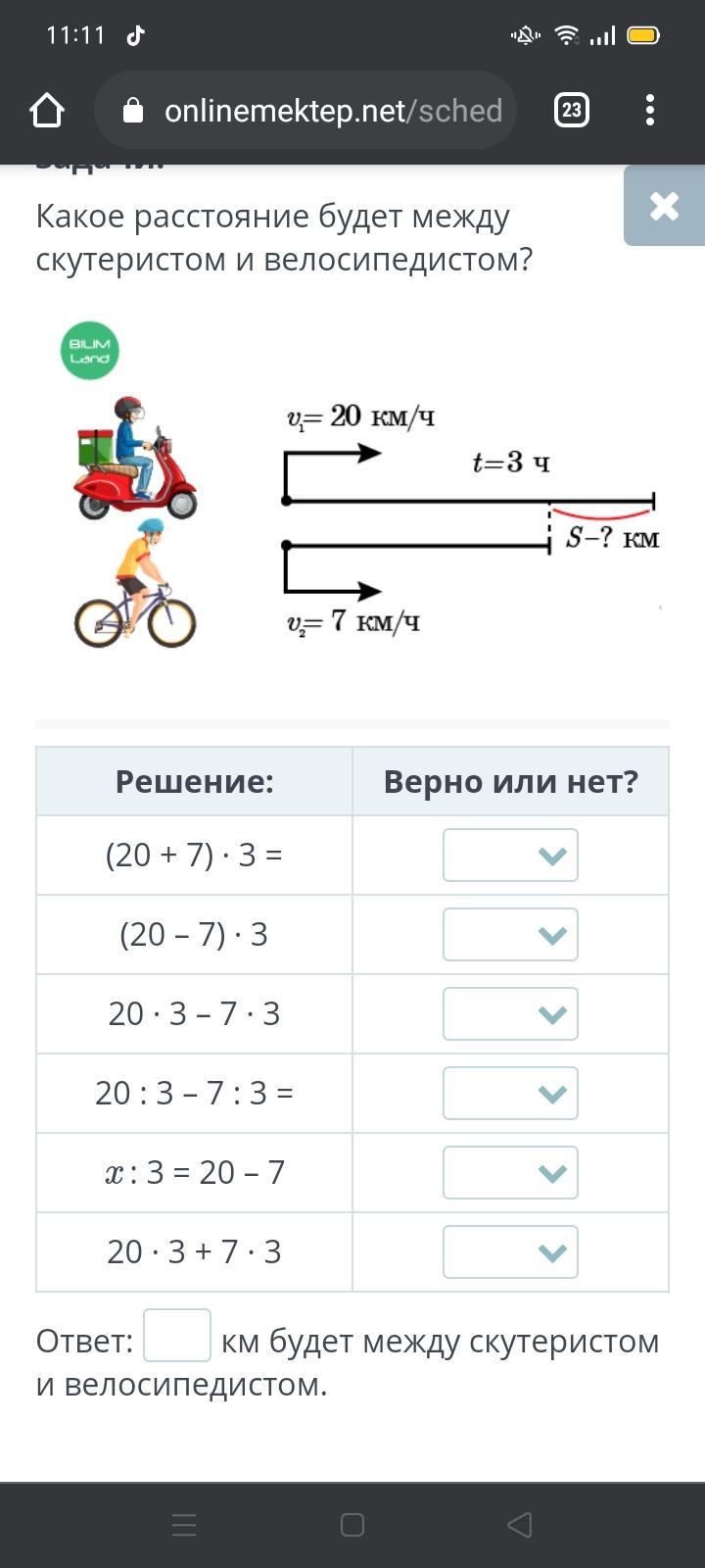 Выбери верные способы решения задачи. Какое расстояние будет между скутеристом и велосипедистом?