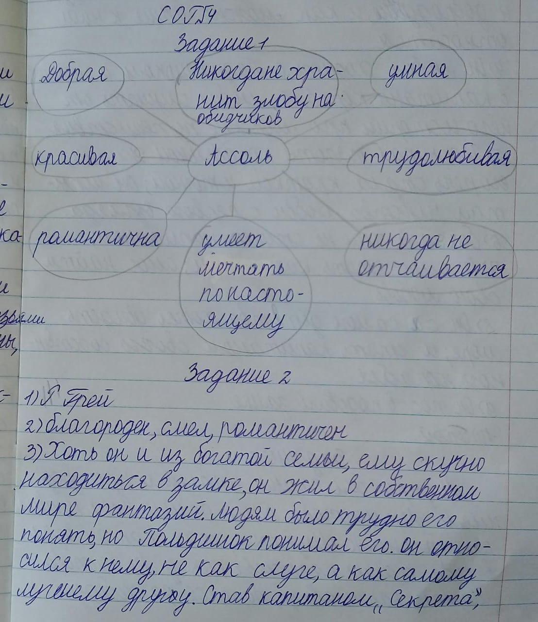 1. Составьте кластер- характеристику образа Ассоль(3б.)