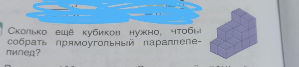 Среднему слою не хватает 3-х кубиков, в верхнем слое - всего 2 кубика, а должно быть 8. Значит не хватает: