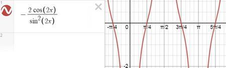 поскольку период производной п/2, то из всех производных через точку (п/4; 0) проходит только производная при 0< x< п/2