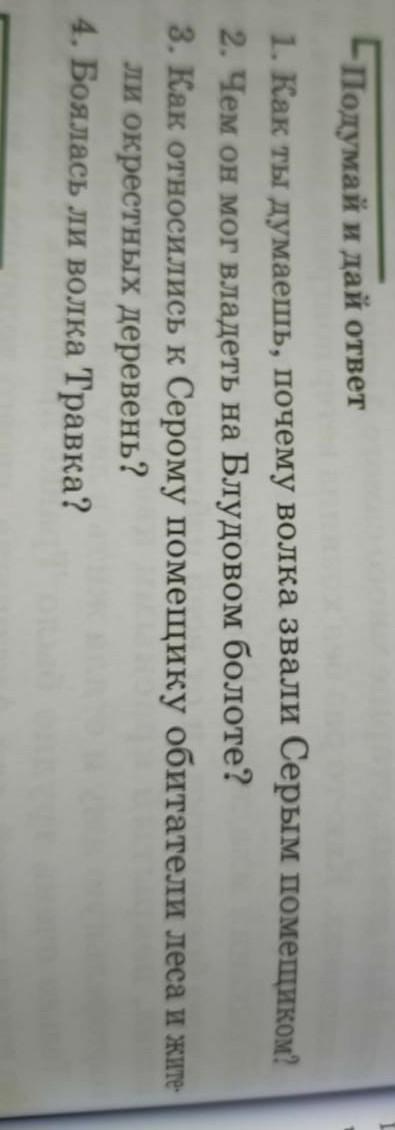 1) Волка назвали Серый Помещик, потому что этот волк был хитер и не уловим. Он всегда перепрыгивал через красные ленты, и никто не мог его убить.