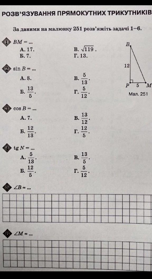 sinB=MP/BM(відношення протилежного катета до гіпотенузи=5/13