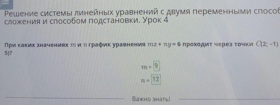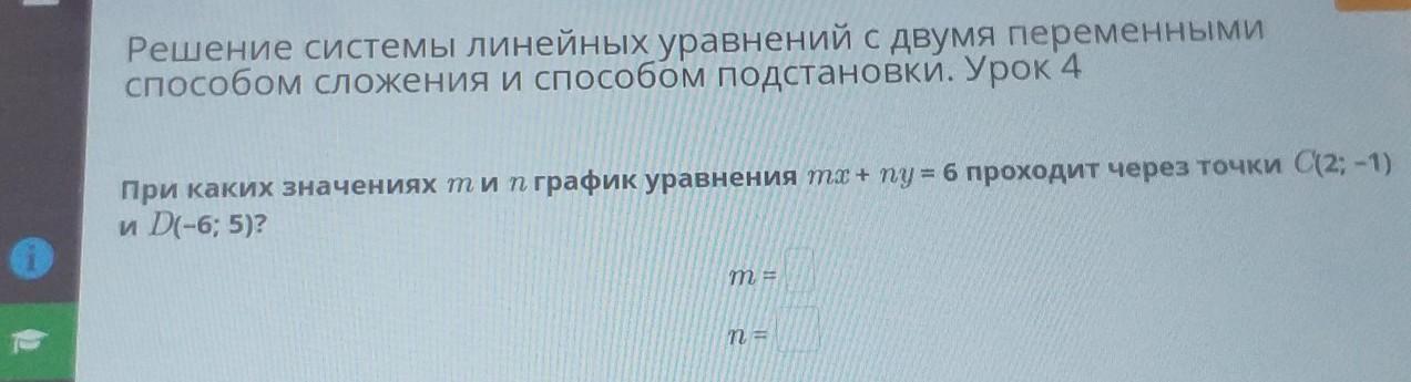При каких значениях тип график уравнения тх + ny = 6 проходит через точки С(2; -1)