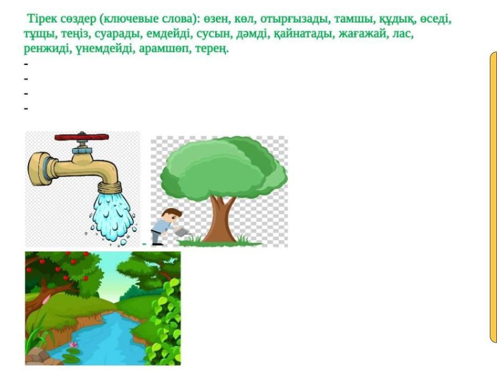 плиз помогите составить диалог на тему вода источник света на казахском дам 5-10 баллов ключевые слова: на фото пж
