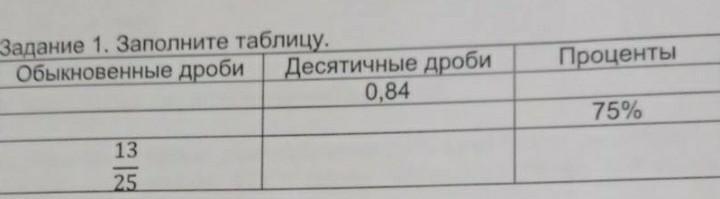 Задание 1. Заполните таблицу.