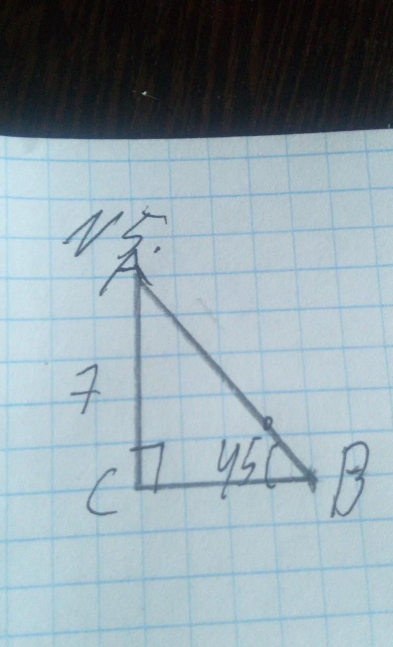 ВС=7. Треугольник прямоугольный равнобедренный. По углам при основании 45°.