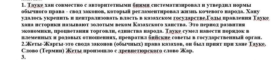 3. Напишите обоснованный вывод о роли хана Тауке на политическое положение Казахского ханства.