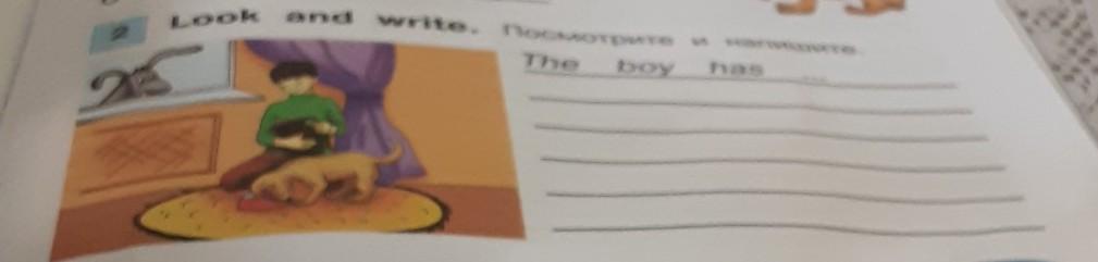 Ответ: The boy has a dog. The boy has a green sweater. The boy has dark hair.